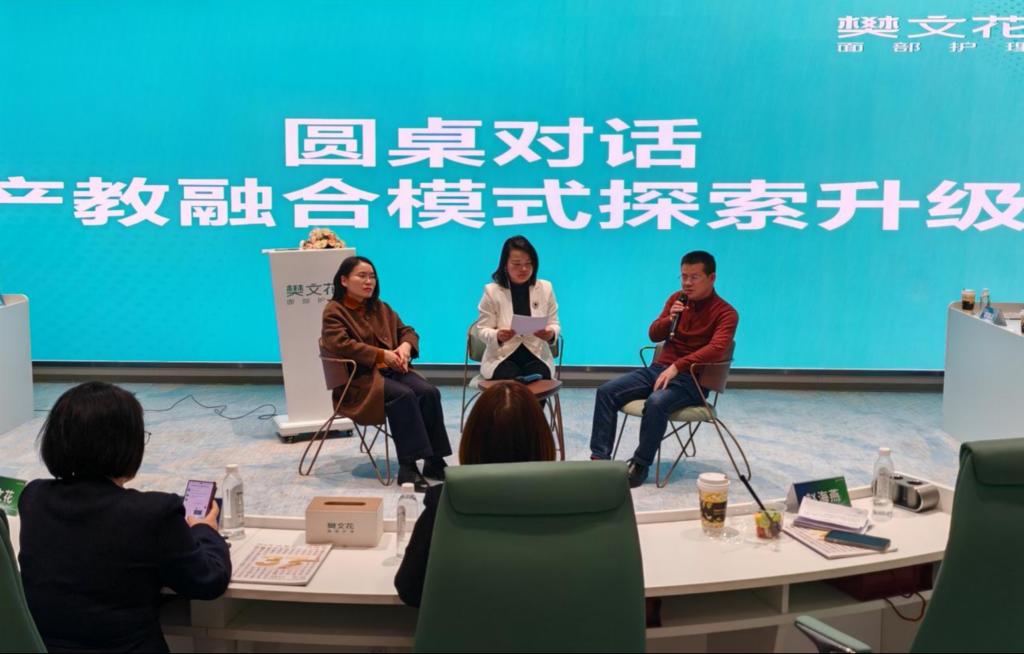經(jīng)驗(yàn)分享環(huán)節(jié)亮點(diǎn)紛呈。樊文花書院院長、學(xué)校兼職教師趙海燕詳細(xì)介紹“以店帶訓(xùn)” 創(chuàng)新人才培養(yǎng)模式,該模式依托企業(yè)真實(shí)門店場(chǎng)景,實(shí)現(xiàn)教學(xué)與實(shí)踐深度融合,讓學(xué)生在真實(shí)面部護(hù)理環(huán)境中錘煉技能、提升綜合素質(zhì),達(dá)成學(xué)習(xí)過程與工作過程的有機(jī)統(tǒng)一,為美妝領(lǐng)域人才培養(yǎng)提供了可復(fù)制推廣的有效路徑。我校化妝品經(jīng)營與管理專業(yè)妝管 2304 班學(xué)生鐘爛輝作為樊文花訂單班及優(yōu)秀實(shí)習(xí)生代表,分享了在校企聯(lián)合培養(yǎng)下的成長歷程,她表示,通過企業(yè)真實(shí)項(xiàng)目實(shí)訓(xùn)與崗位輪崗鍛煉,不僅扎實(shí)掌握了專業(yè)技能,更明晰了職業(yè)發(fā)展方向,順利實(shí)現(xiàn)從學(xué)生到行業(yè)預(yù)備人才的過渡。