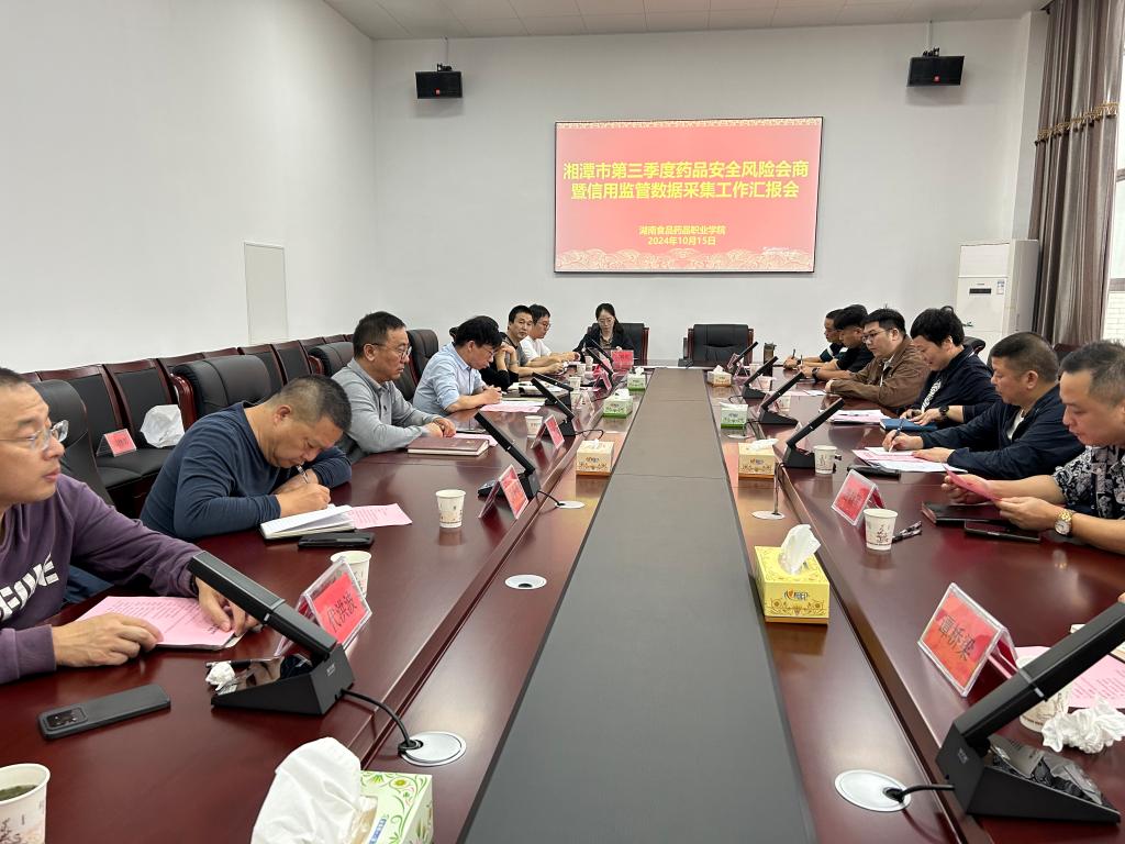 10月15日下午,我校與湘潭市市場監(jiān)督管理局在學(xué)校辦公樓301會議室召開湘潭市第三季度藥品安全風(fēng)險會商暨信用監(jiān)管數(shù)據(jù)采集工作匯報會。湘潭市市場監(jiān)督管理局周艷副局長、藥品流通監(jiān)管科朱紅勝科長、黃傲冰,岳塘區(qū)、雨湖區(qū)、湘潭縣、韶山市、湘鄉(xiāng)市藥品監(jiān)管股負責(zé)人,學(xué)校黨委委員、副校長張雪昀,我校數(shù)據(jù)采集工作組15名教師出席會議。會議由科研與發(fā)展規(guī)劃處處長潘偉男主持。