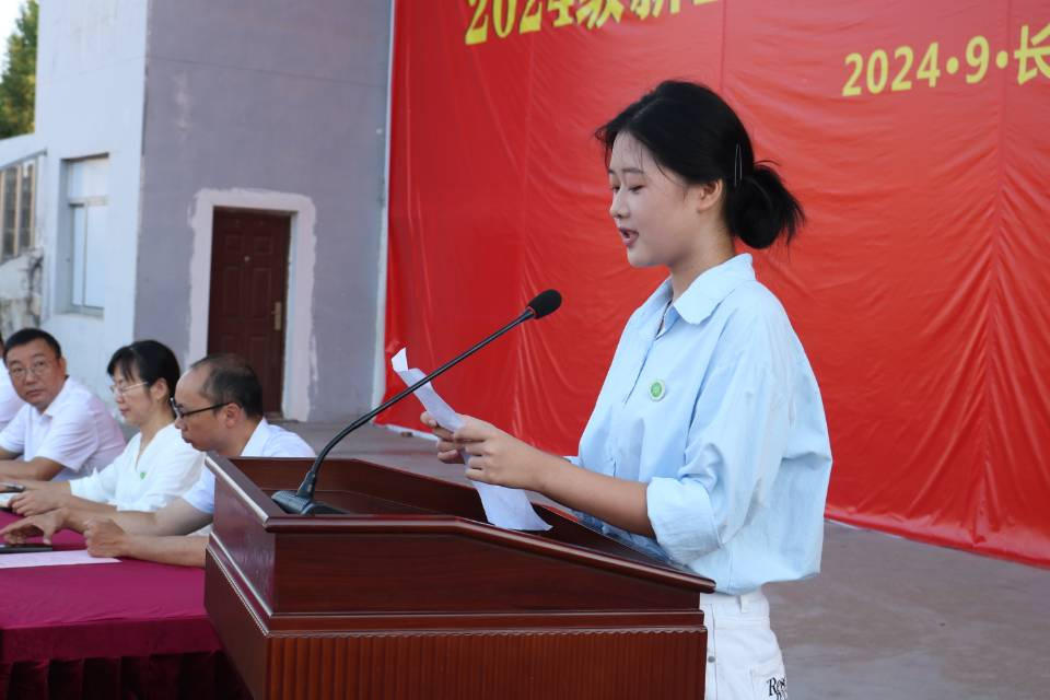 中藥2404班吳芳芳代表新生發(fā)言并承諾,將以飽滿的熱情、嚴謹?shù)膽B(tài)度投入到軍訓中,不畏艱難,勇于挑戰(zhàn),確保完成各項訓練任務,展現(xiàn)了新生們積極向上的精神風貌。